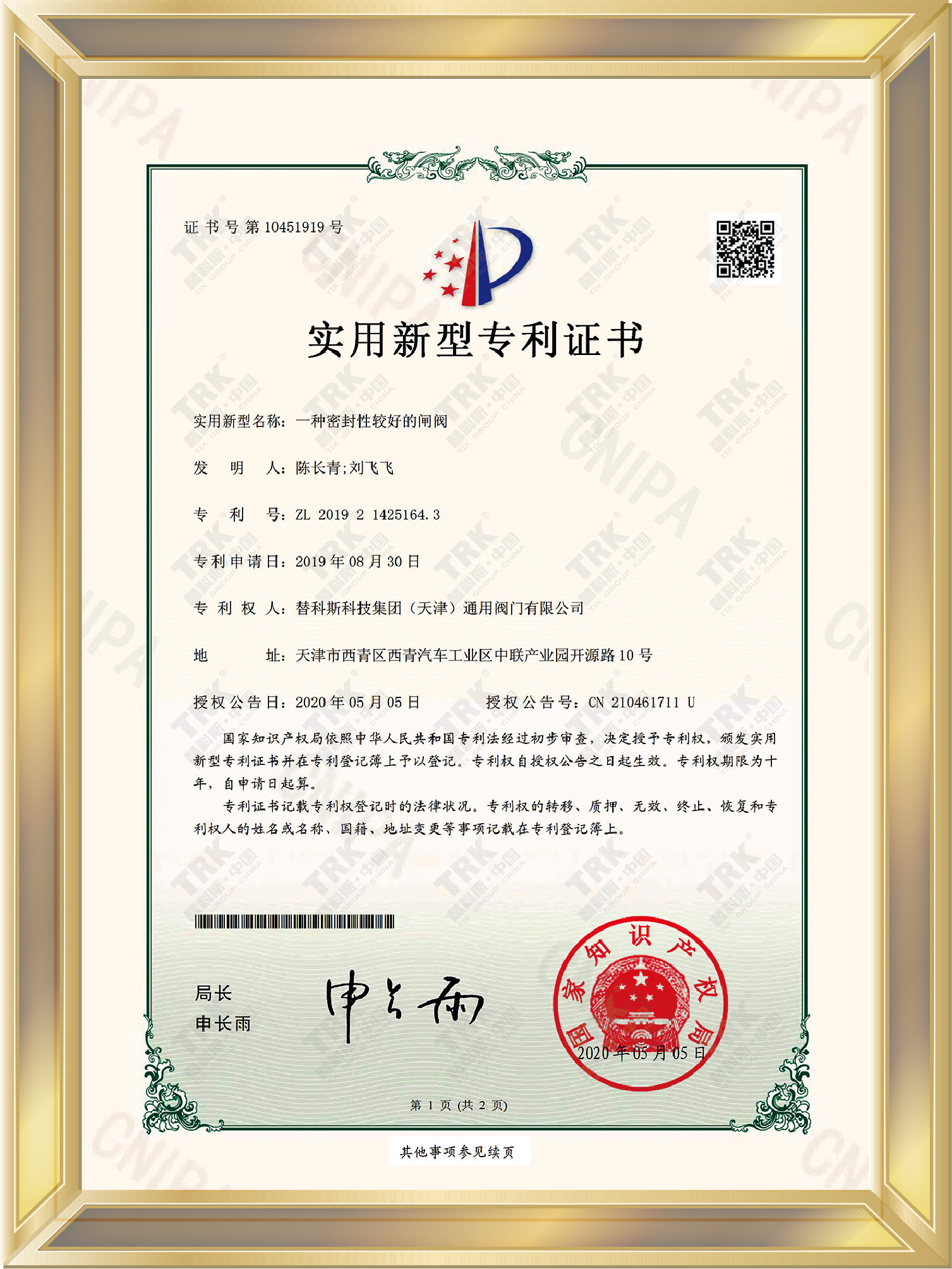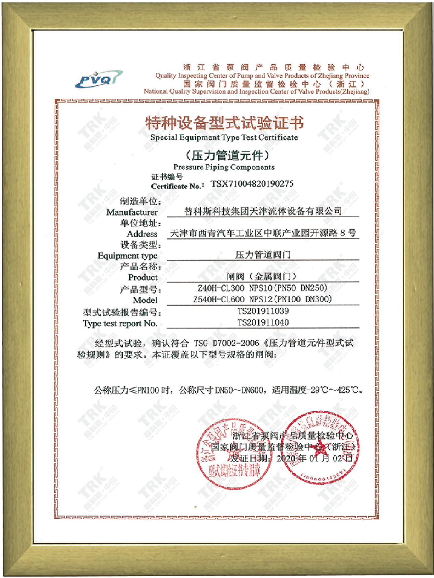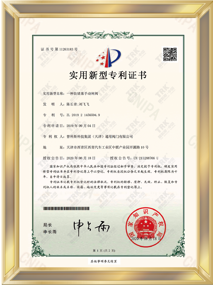 特種設備型式試驗證書-閘閥