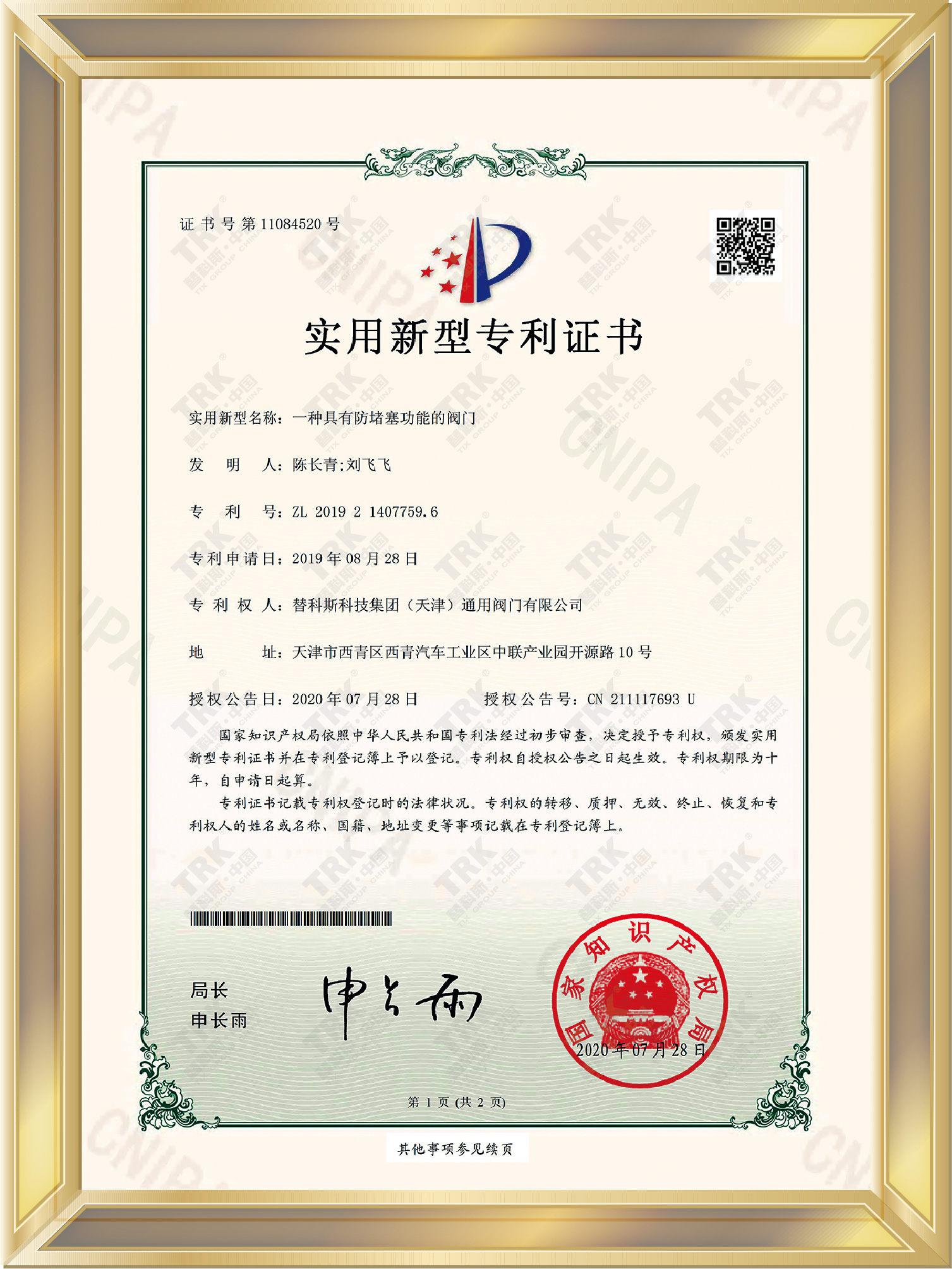 知識產權管理體系認證證書