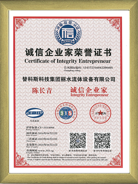 誠信企業家榮譽證書