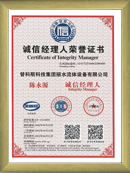 誠信經理人榮譽證書