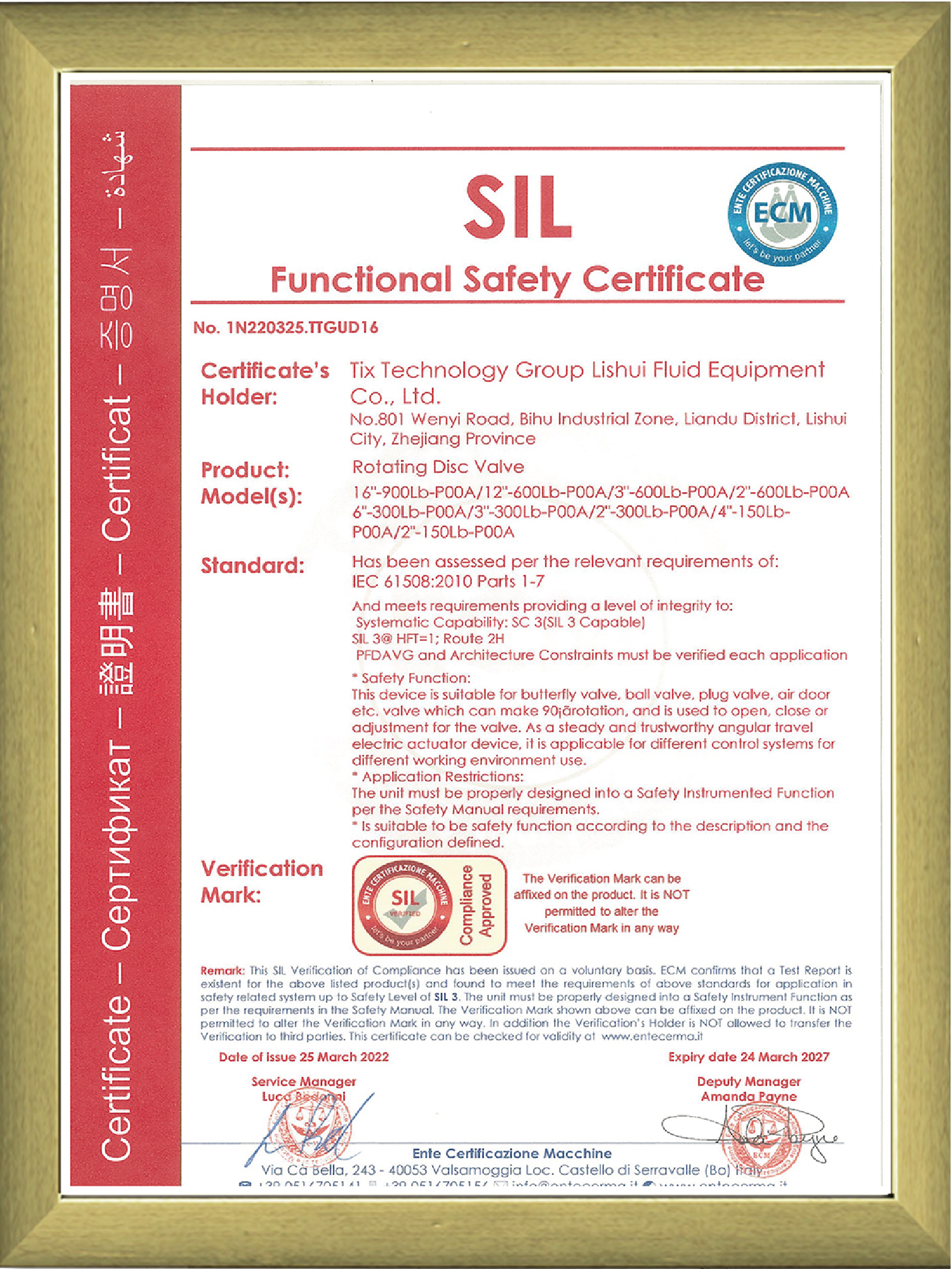特種設備型式試驗證書-截止閥