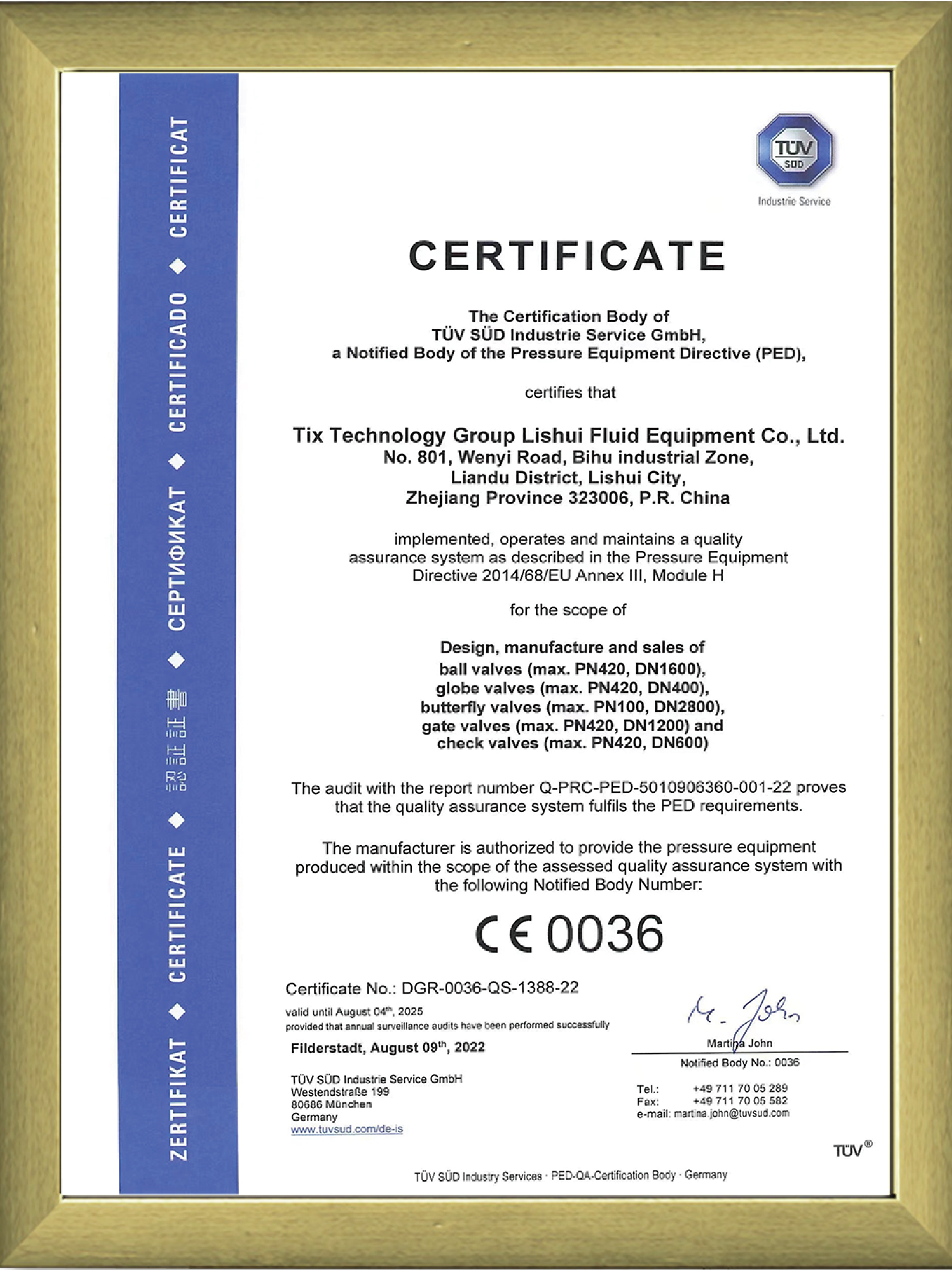 特種設備型式試驗證書-蝶閥